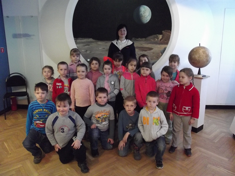 В подготовительной к школе группы была продведена следующая работа по данной теме: цикл занятий, посвященных космосу, первому космонавту Юрию Гагарину, читали стихи, рассказы о космосе и космонавтах, познавательные беседы, на которых дети узнали о планете Земля, о Солнце и звёздах, о полётах в космос. На занятиях дети фантазировали и выполняли рисунки о «Путешествии на космическом корабле», аппликацию о «Полете на Луну». Внимание детей привлекла оформленная в группе выставка книг о космосе и космонавтах, они с удовольствием рассматривали иллюстрации. Ребята с увлечением проверяли свои знания в дидактических играх. С интересом играли в подвижные игры «Мы-космонавты», «Космодром». Завершающим неделю мероприятие, стала экскурсия в музей-космонавтики имени К. Э. Циолковского. Дошкольники вновь услышали рассказ экскурсовода о жизни нашего земляка великого ученого, увидели фильм о полетах космонавтов, приобщились к истории космонавтики.