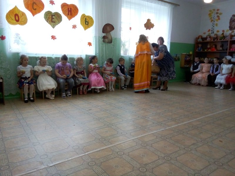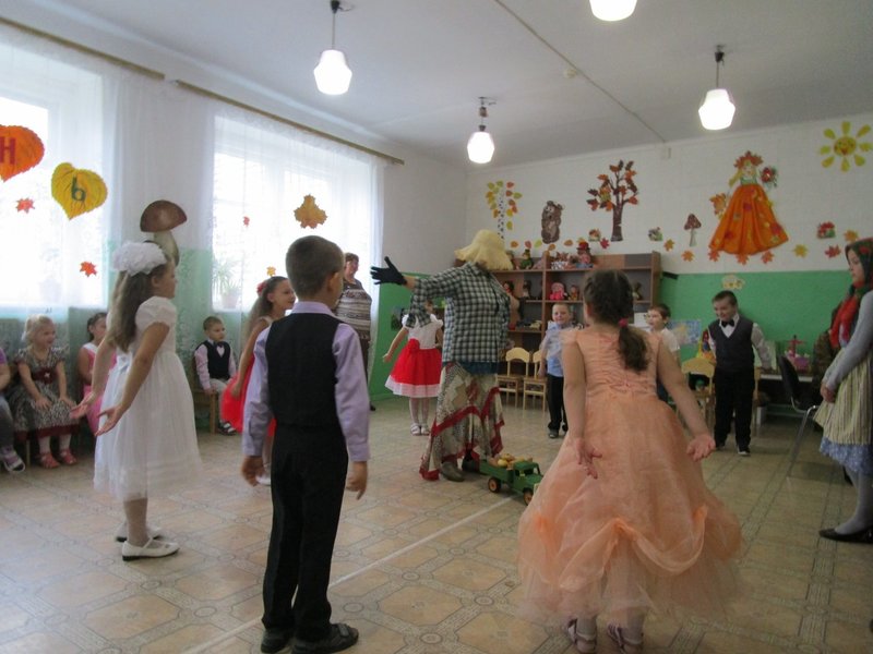 25 октября в детском саду "Светлячок" старших дошкольников пригласила к себе на праздник "Золотая осень". Праздник проходил под руководством музыкального руководителя Прокофьевой Алла Петровны и воспитателя подготовительной к школе группе Шапочкиной Любовь Алексеевны. Начало торжества началось с танца детей с осенними листьями. Дети были все нарядные, довольные и счастливые. Улыбки так и сияли на их лицах. Ребятишки повстречались с дедом и бабкой, которые помогли им собрать урожай. Все вместе славили осень весёлыми песнями и стихами. Сюрпризом для всех стало появление на празднике пугало огородного. Дети играли с ним в весёлые игры. На протяжении всего праздника дошкольники проявляли интерес, были активны и организованны. В завершении Осень подарила большой гриб, в котором ребятки обнаружили сладкий подарок. Атмосфера на празднике была доброжелательной и тёплой. Праздник удался! Спасибо всем, кто его готовил и принимал участие.