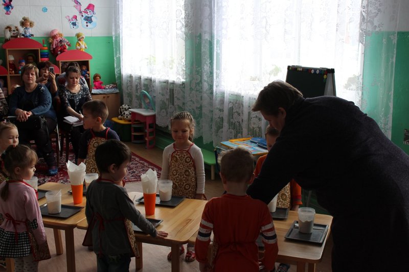 Заведующий ДОУ Рудакова Галина Александровна встретила участников приветственным словом. Затем гости были приглашены во 2 младшую группу на просмотр НОД «Чудесная мука» - воспитатель 1 квалификационной категории Кудинова Марина Александровна.
