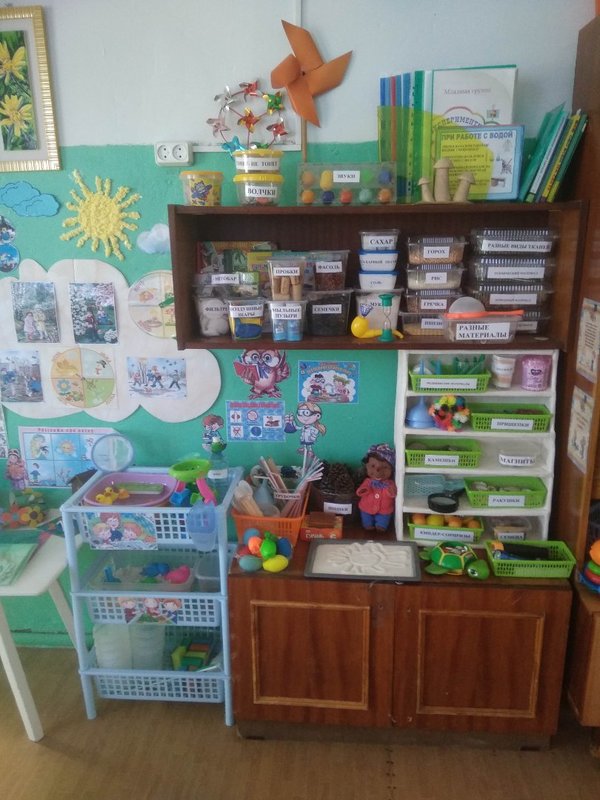В нашей младшей группе мы оформили уголок экспериментирования. В нем есть все, что может быть интересно детям. Уголок делится на компоненты: дидактический (познавательные книги, дидактические игры, тематические альбомы, картотеки опытов, правила поведения во время опытов). Компонент оборудования ( лупы, песочные часы, фонарики, емкости для игр с водой). Стимулирующий компонент разделяется на природный медицинский, утилизированный, технический, прочий материалы, красители, разные виды бумаги. Составлен перспективный план на год. Содержание исследований включает формирование представлений о материалах, природных явлениях, о мире растений. Работа с детьми направлена на создание условий для сенсорного развития, в ходе ознакомления их с явлениями и объектами окружающего мира.