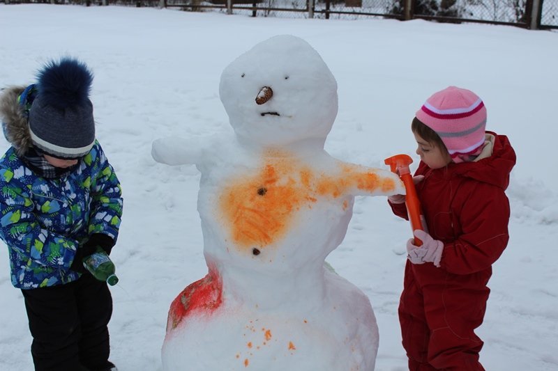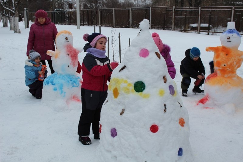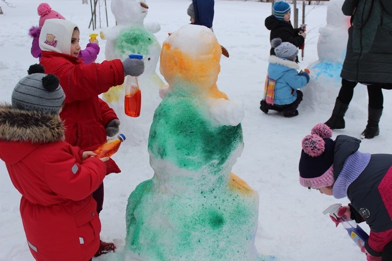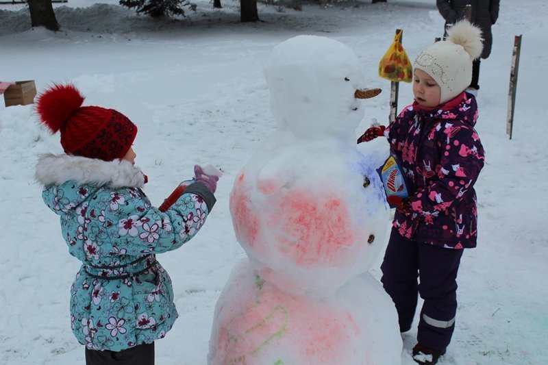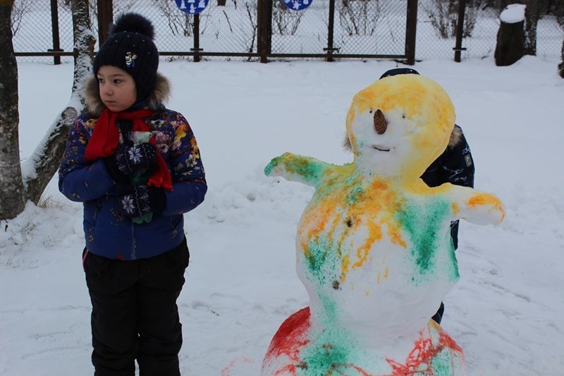 Работники музея попросили ребят помочь снеговикам. Дети с радостью откликнулись на помощь. Веселье удалось на славу. Дошкольники раскрасили Снеговиков цветными красками, сделав каждого из них красивым и неповторимым. А потом, взявшись за руки, дети и взрослые водили хоровод вокруг снеговиков под веселую музыку. Играли в игру "Мыши в мышеловки", "Попади в цель".