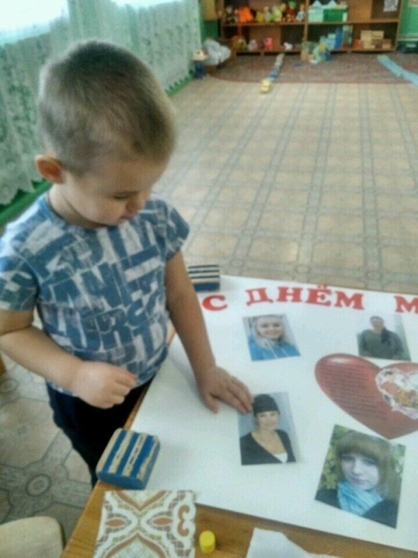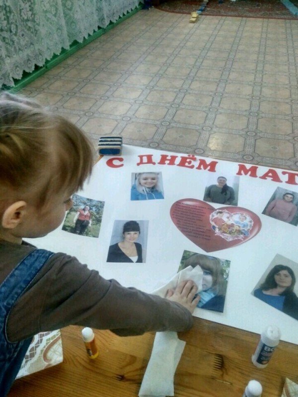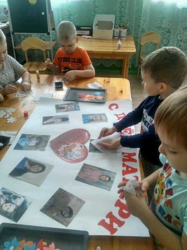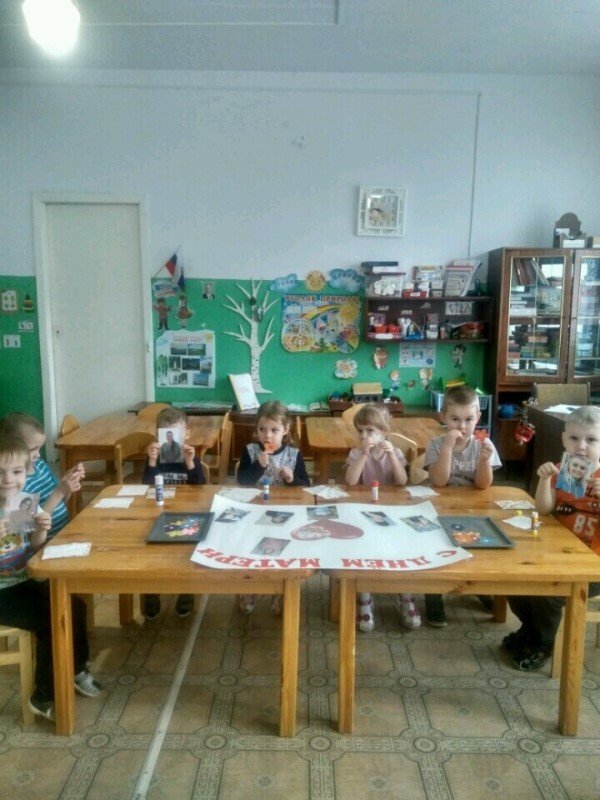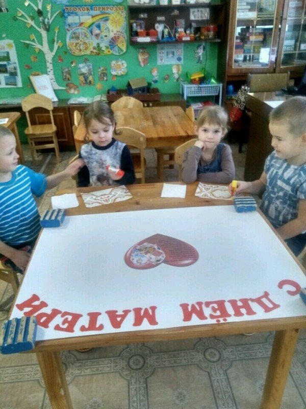 В преддверии праздника в средней группе проводились дидактические, сюжетно-ролевые игры, где дети учились проявлять заботу, бережное отношение к мамам. Так же велись беседы "День Матери - праздник всех мам", "Вот какая мама - золотая прямо". Ребята знакомились с художественной литературой, посвященной маме, говорили о профессиях своих мам, с любовью рассказывали друг другу о своих мамах. Готовили подарки, рисовали цветы для мам, оформили стенгазету с поздравлениями, с удовольствием лепили из пластилина "угощения" для мамы.